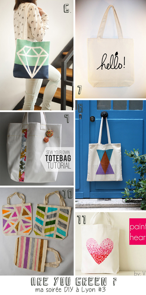 Choisir son tote bag, avec de petits messages rigolos, des décos en peinture/feutres textiles, des paillettes, des pompons, y’à plus qu’a….